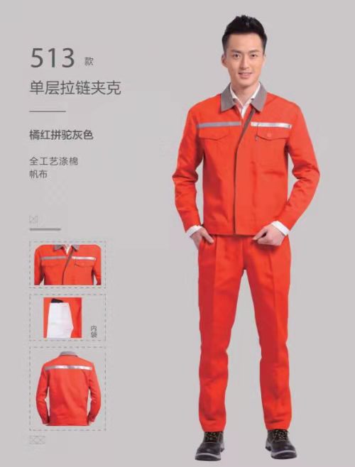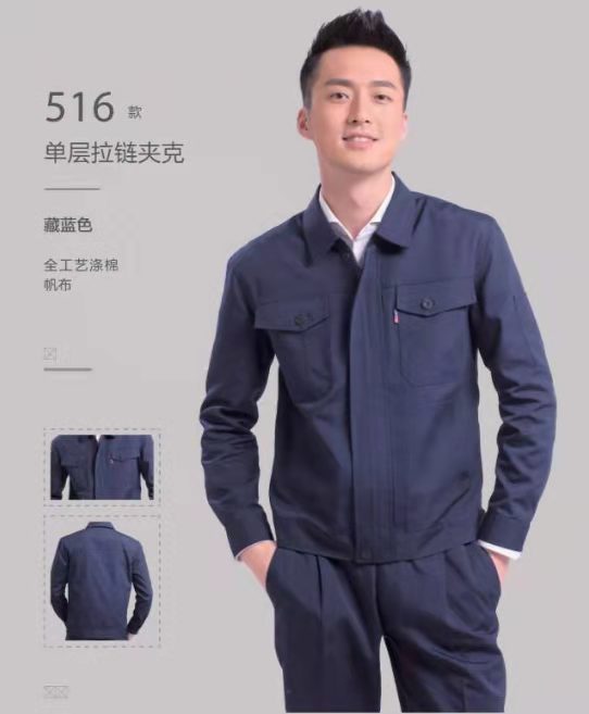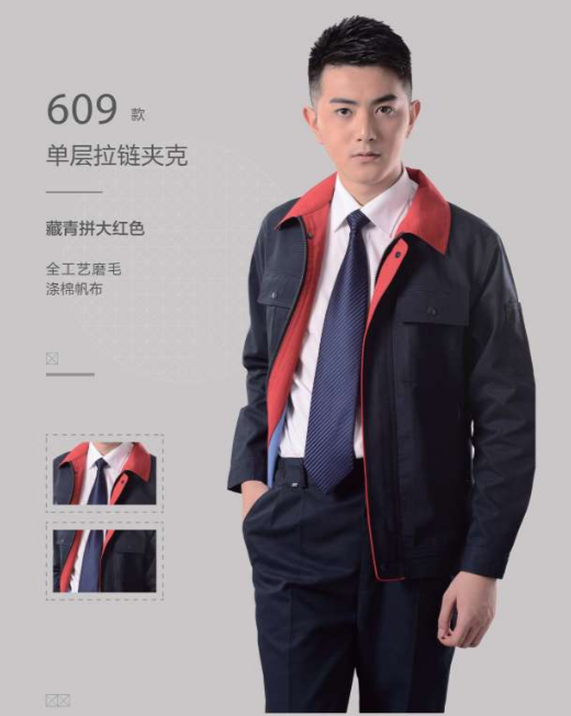藏蓝拼红领劳保工装